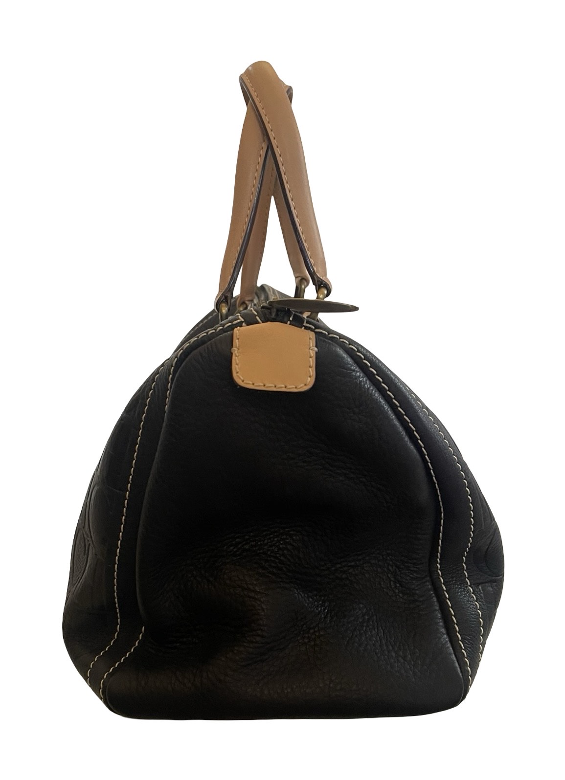 • Tan rolled top handles and tabs